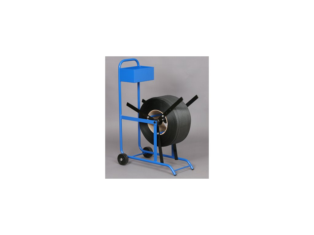 Pojízdný odvíječ pro PP pásku. Univerzální pro všechny rozměry dutinek polypropylenových vázacích pásek. Nastavitelná šířka i průměr bubnu. Nosná část na kuličkových ložiscích. Mechanická brzda na ose cívky. Plechová krabice pro odložení spon. Kovové části jsou lakovány vypalovacím práškovým lakem v odstínu RAL 5005.