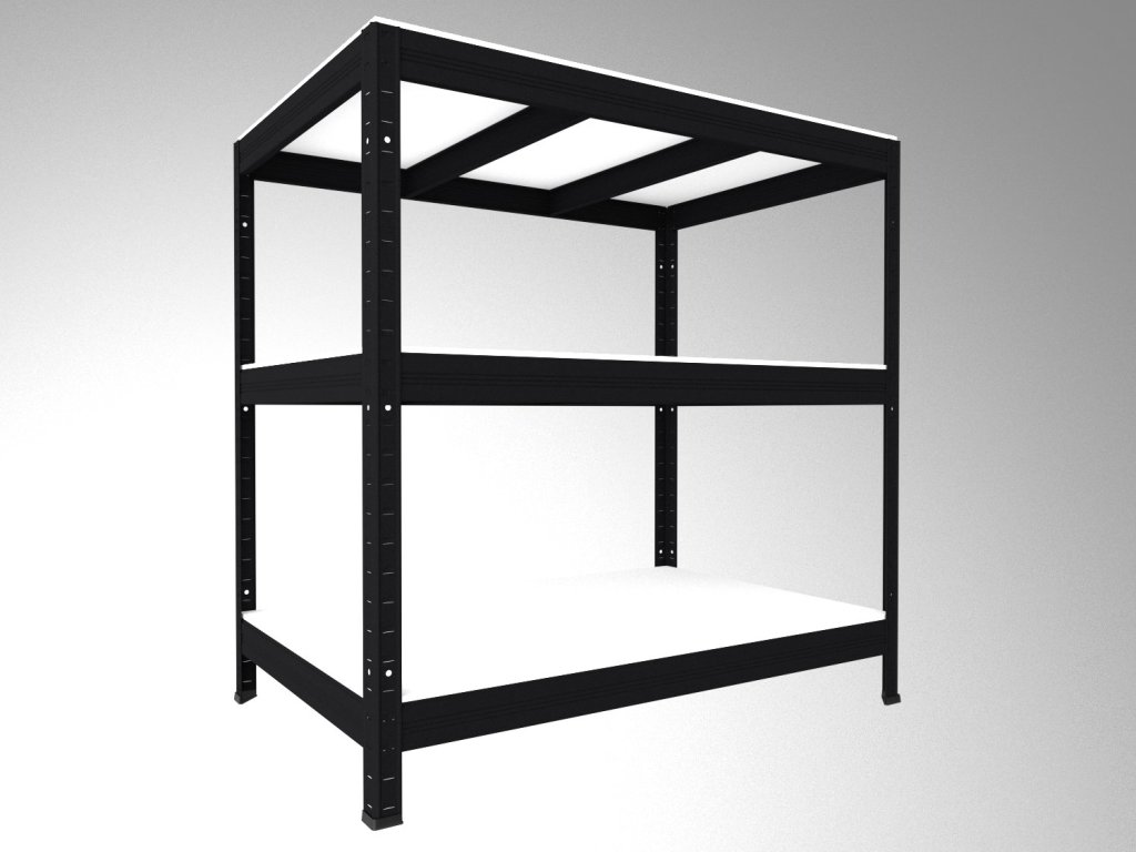 Bezšroubový regál Biedrax 35 x 120 x 120 cm, černý, 3 police bílé lamino 12mm, nosnost 200 kg na polici