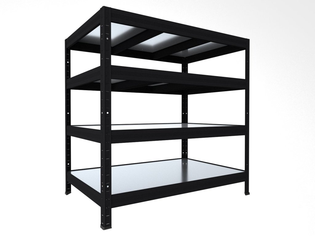 Bezšroubový regál Biedrax 35 x 120 x 120 cm, černý, 4 police plech zinek, nosnost 150 kg na polici