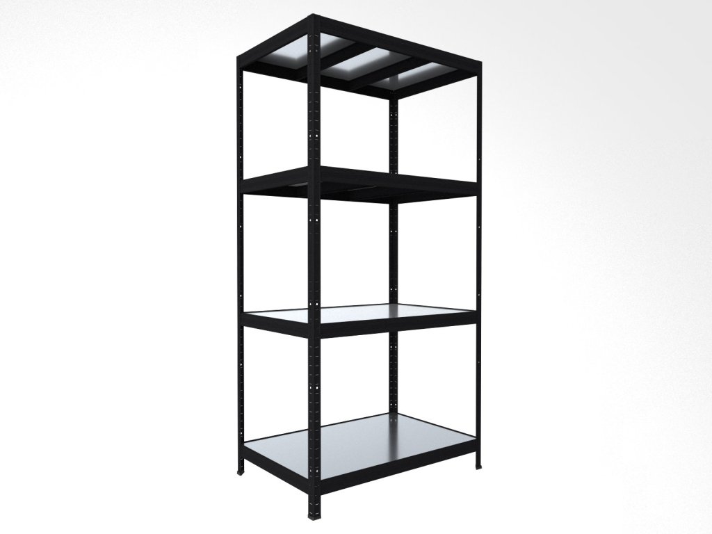 Bezšroubový regál Biedrax 35 x 120 x 180 cm, černý, 4 police plech zinek, nosnost 150 kg na polici
