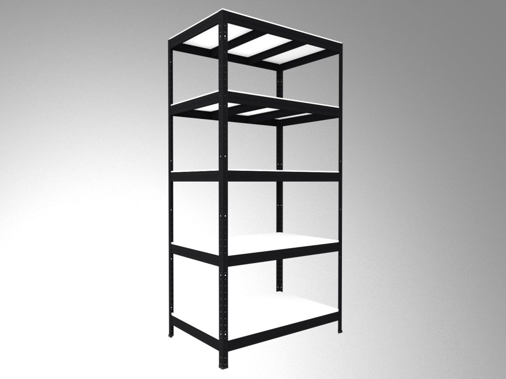 Bezšroubový regál Biedrax 35 x 120 x 180 cm, černý, 5 polic bílé lamino 12mm, nosnost 200 kg na polici