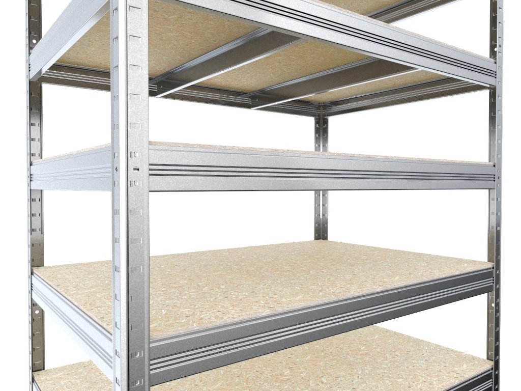 Bezšroubový regál Biedrax 35 x 120 x 180 cm, pozink, 4 police OSB 10 mm, nosnost 200 kg na polici