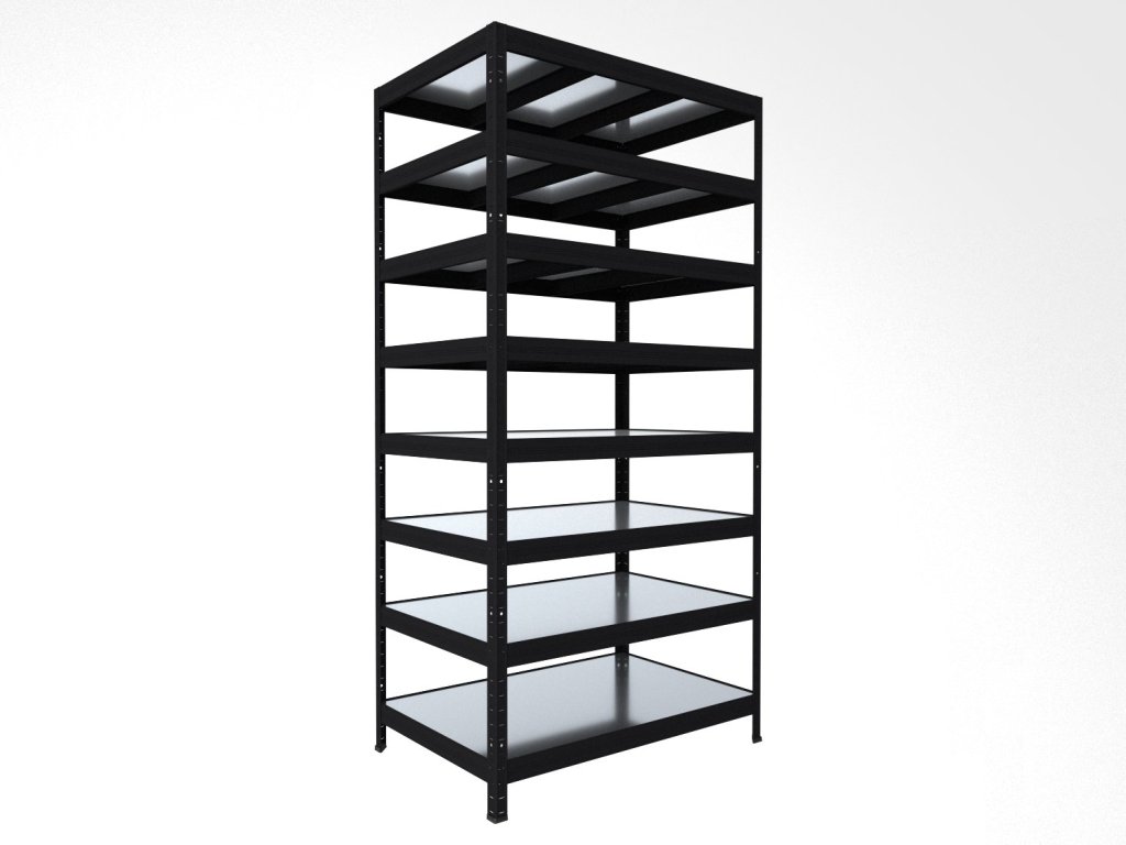 Bezšroubový regál Biedrax 35 x 120 x 210 cm, černý, 8 polic plech zinek, nosnost 150 kg na polici