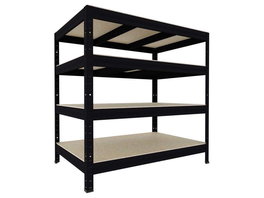 Bezšroubový regál Biedrax 35 x 120 x 90 cm, černý, 4 police OSB 10 mm, nosnost 200 kg na polici