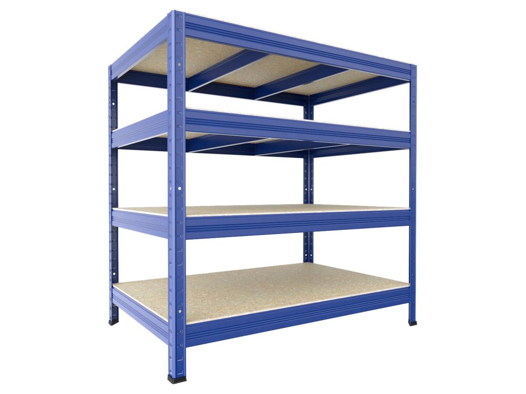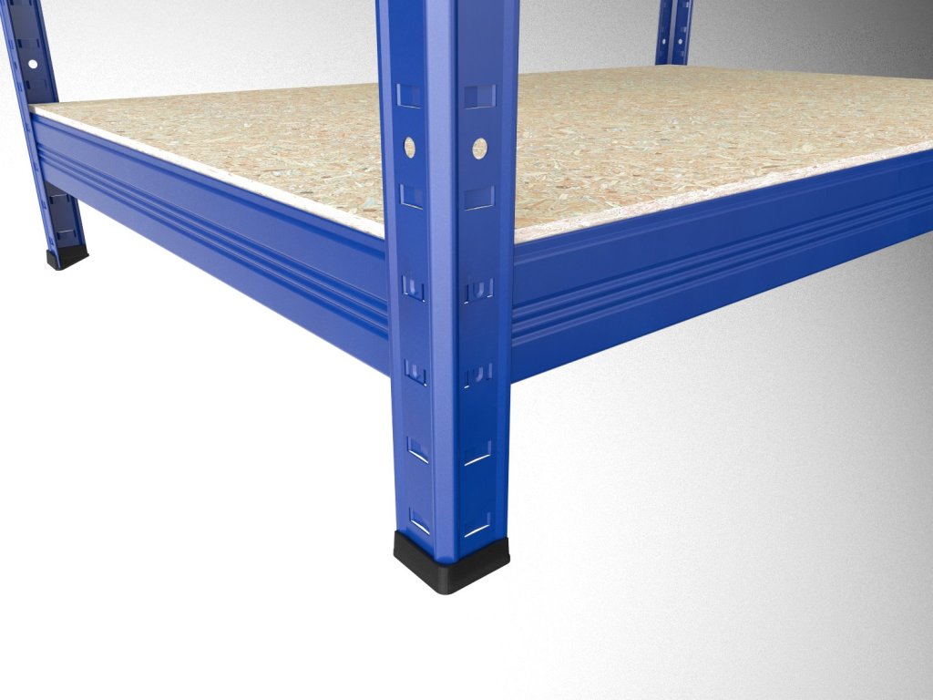 Bezšroubový regál Biedrax 35 x 120 x 90 cm, modrý, 4 police OSB 10 mm, nosnost 200 kg na polici