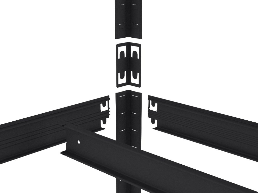 Bezšroubový regál s pozinkovanými plechovými policemi, které jsou odolné, omyvatelné a vhodné i do vlhkého prostředí jako jsou sklepy, garáže nebo skleníky. Unikátní bezšroubový systém zaručuje rychlou montáž a vysokou stabilitu. Police jsou navíc chytře zapuštěny do nosníků, čímž vzniká praktický 4mm okraj, který brání vypadnutí uložených předmětů.
