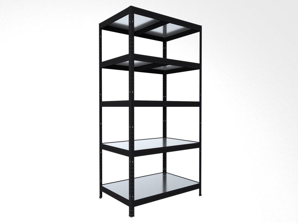 Bezšroubový regál Biedrax 35 x 60 x 180 cm, černý, 5 polic plech zinek, nosnost 150 kg na polici