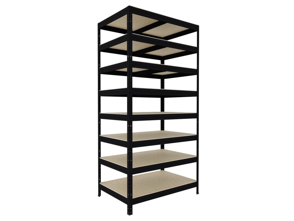 Bezšroubový regál Biedrax 35 x 60 x 210 cm, černý, 8 polic OSB 10 mm, nosnost 200 kg na polici