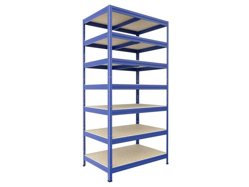Bezšroubový regál Biedrax 35 x 60 x 210 cm, modrý, 7 polic OSB 10 mm, nosnost 200 kg na polici