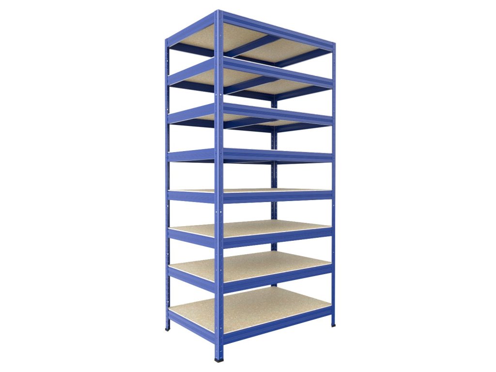Bezšroubový regál Biedrax 35 x 60 x 210 cm, modrý, 8 polic OSB 10 mm, nosnost 200 kg na polici