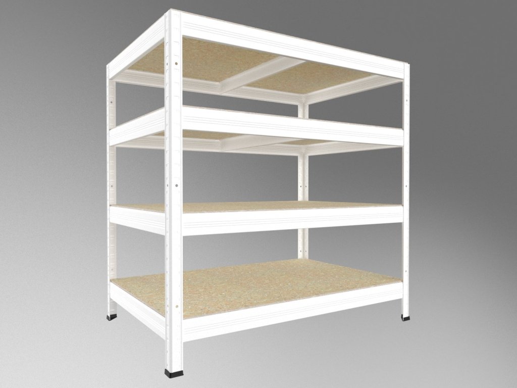 Bezšroubový regál s policemi z dřevotřísky OSB 10 mm. Regály s OSB policemi jsou vhodné i do vlhkých prostor jako například přístřešky, pergoly či sklepy. Nejsou však určeny do exteriéru s přímým působením srážek. Unikátní bezšroubový systém montáže umožňuje rychlé sestavení – nosníky stačí zasunout do stojin a zajistit lehkým poklepem. Pevné spojení bez šroubů zaručuje tuhost celé konstrukce.
