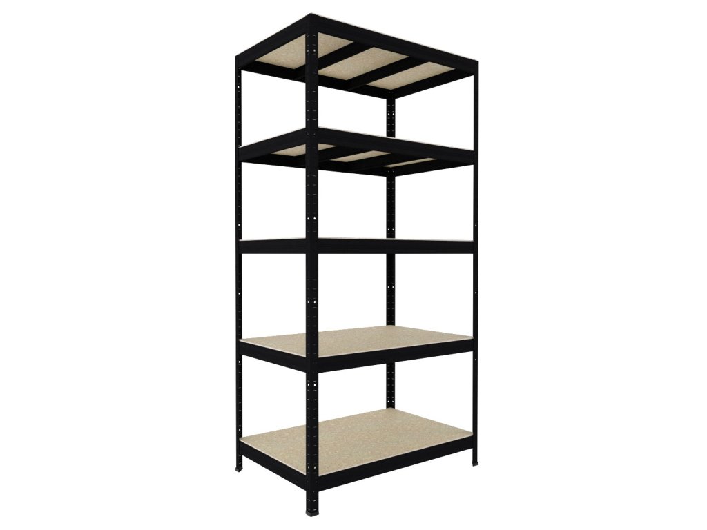 Bezšroubový regál Biedrax 35 x 75 x 180 cm, černý, 5 polic OSB 10 mm, nosnost 300 kg na polici