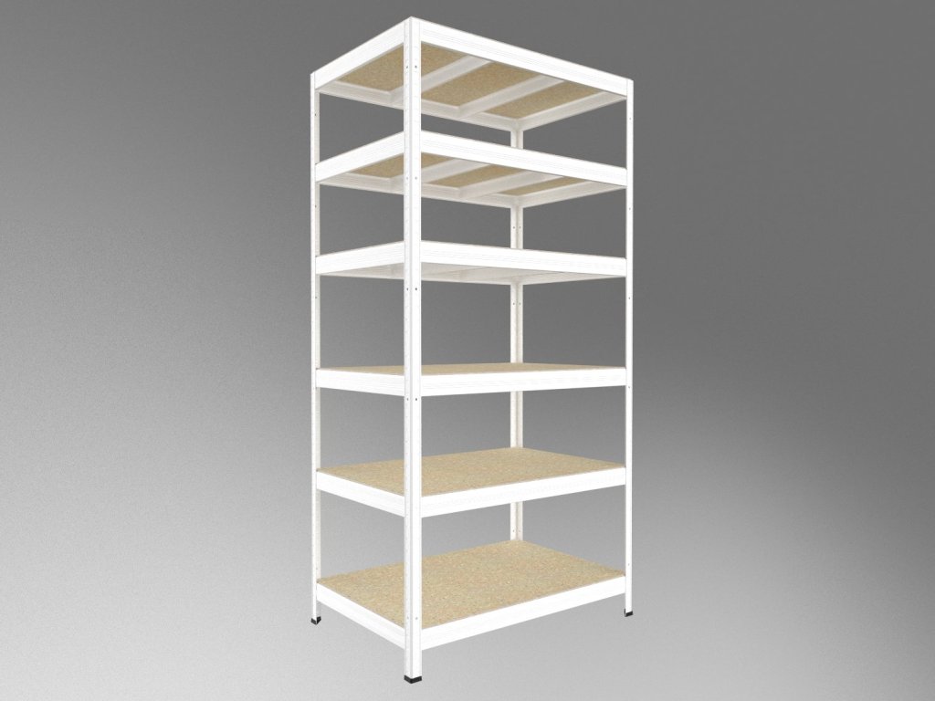 Bezšroubový regál Biedrax 35 x 75 x 210 cm, bílý, 6 polic OSB 10 mm, nosnost 300 kg na polici