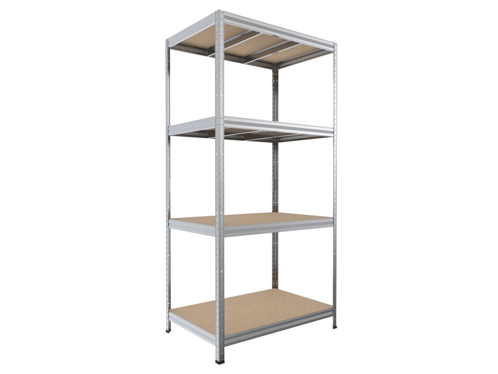 Bezšroubový regál Biedrax 35 x 120 x 180 cm, pozink, 4 police MDF, nosnost 200 kg na polici