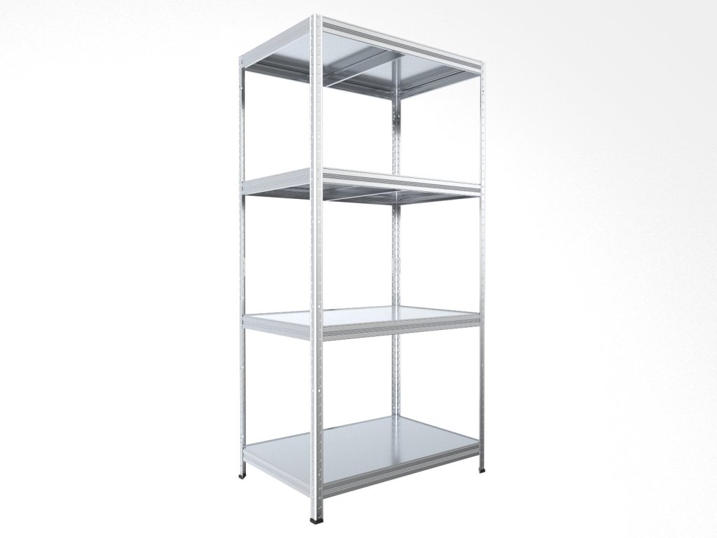 Bezšroubový regál Biedrax 35 x 60 x 180 cm, pozink, 4 police plech, nosnost 150 kg na polici