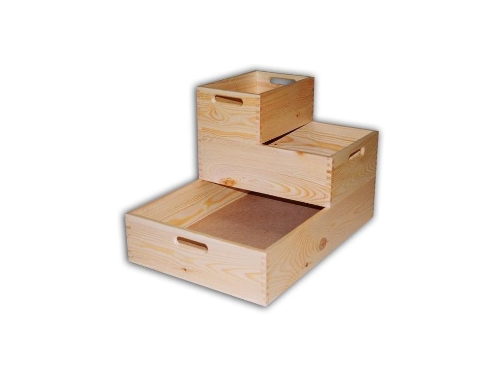 Dřevěné bedny jsou vyrobeny ze smrkového dřeva. Bedny jsou stohovatelné a doplní naše dřevěné regály. Bedny dodáváme v přírodním stavu nebo za příplatek lakované anebo namořené do různých odstínů. K povrchové úpravě jsou použity ekologické a zdravotně nezávadné nátěrové hmoty.