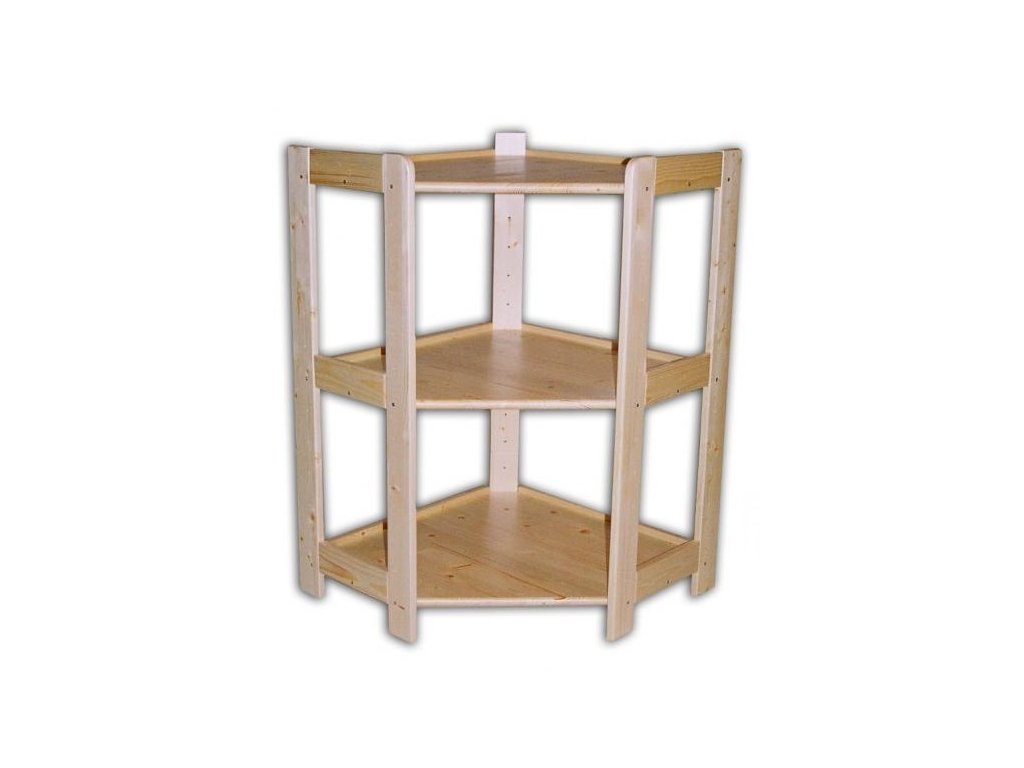 regál dřevěný masivní - rohový 60 x 60 x 89 cm, 3 police