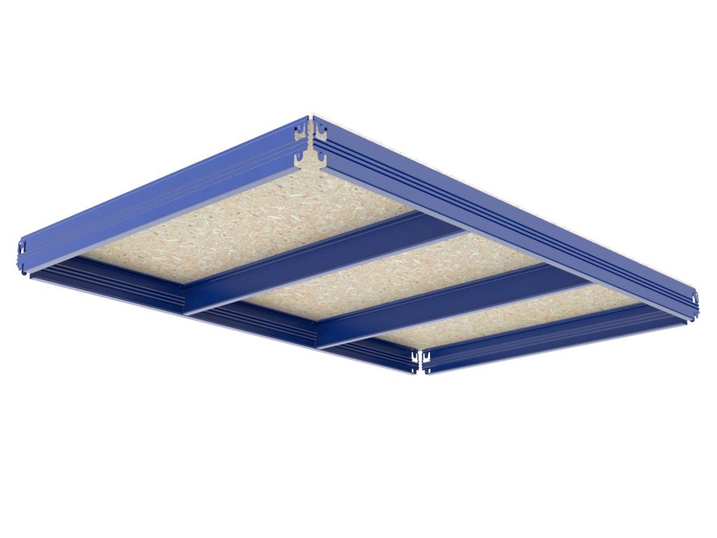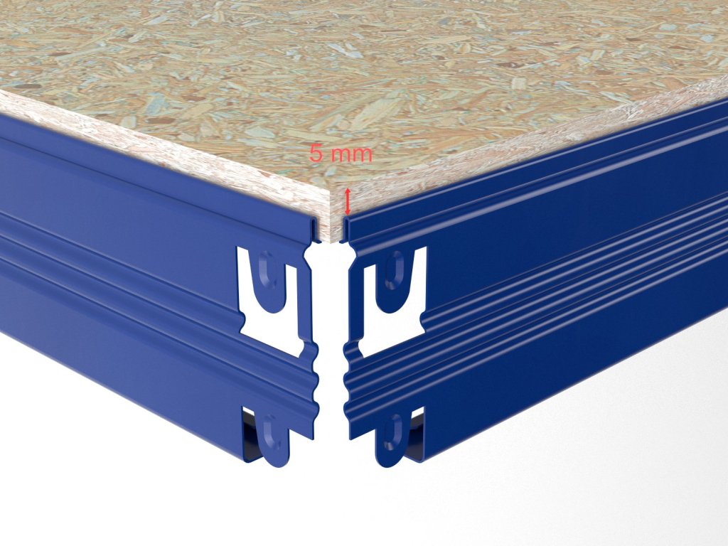- Výška patra včetně OSB 10 mm je 62 mm (police přesahuje horní hranu nosníků o 5 mm)