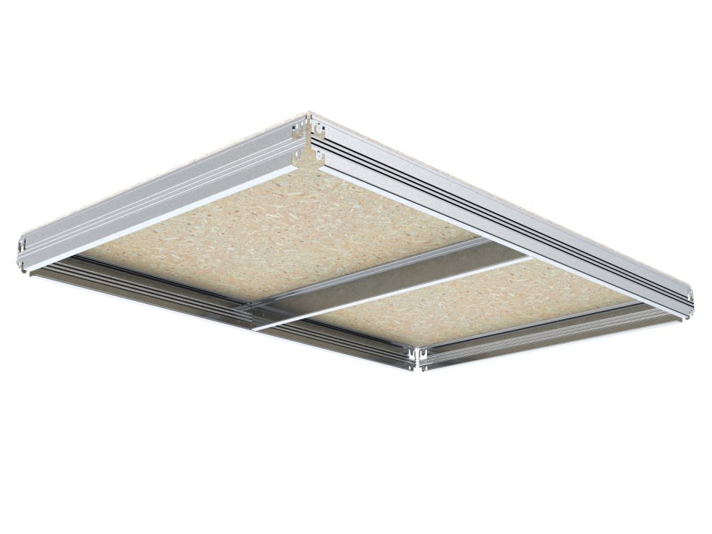 - Výška patra včetně OSB 10 mm je 62 mm (police přesahuje horní hranu nosníků o 5 mm)