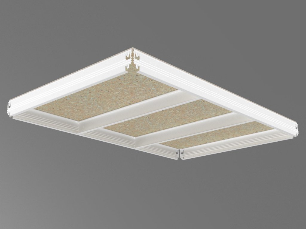 - Balení obsahuje jednu kompletní polici (patro), jak je vyobrazena na prvním obrázku nahoře v galerii: sadu nosníků, výztuhy a OSB polici 10 mm. Vše potřebné k montáži jedné police.