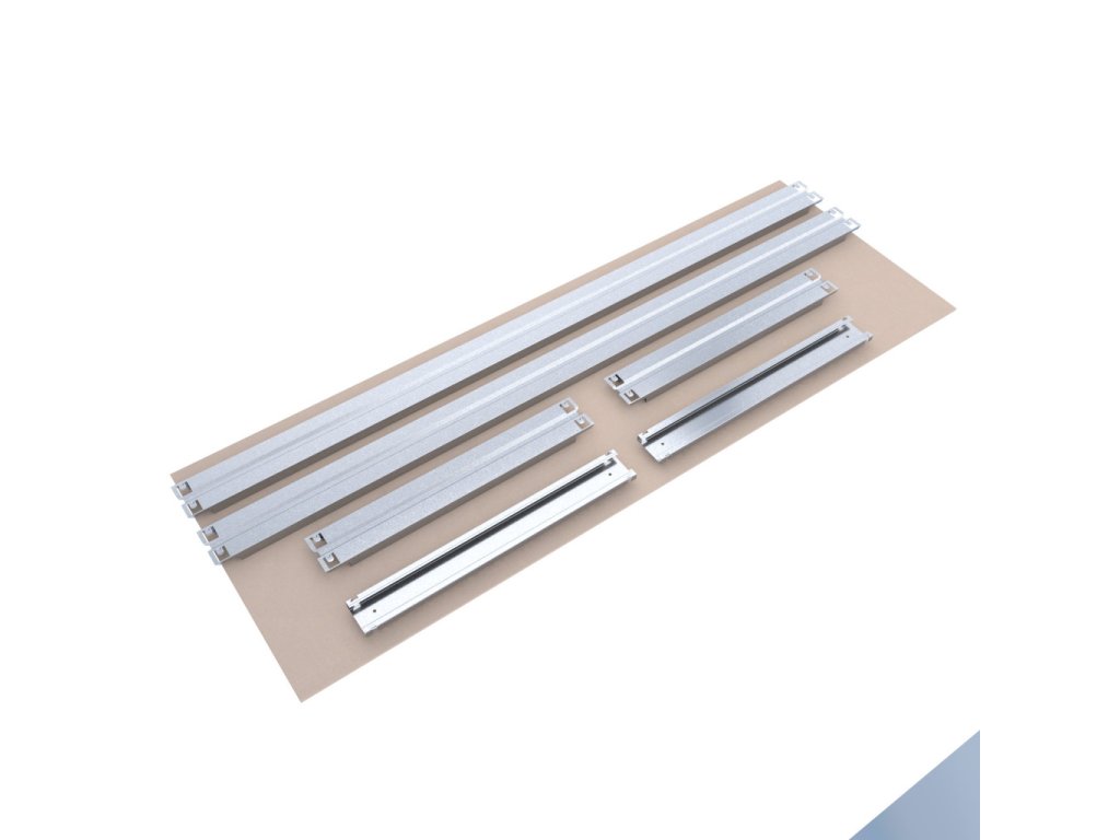 - Balení obsahuje jednu kompletní polici (patro), jak je vyobrazena na prvním obrázku nahoře v galerii: sadu nosníků, výztuhu a MDF polici. Vše potřebné k montáži jedné police.
