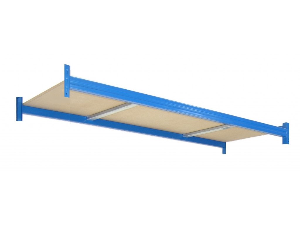 samostatné patro k profesionálním regálům Biedrax tvoří dva nosníky (vodorovné příčky), 2 výztuhy a 1 dřevotřísková deska tloušťka 18 mm