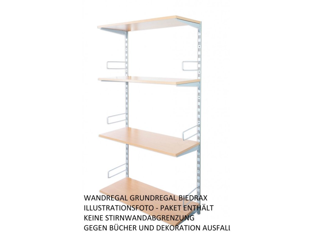 - Obsah balení základní regál: 2 kovové nástěnné lišty , kovové nosníky pod polici, police dřevotříska lamino 18 mm, šroubky pro připevnění polic k nosníkům.