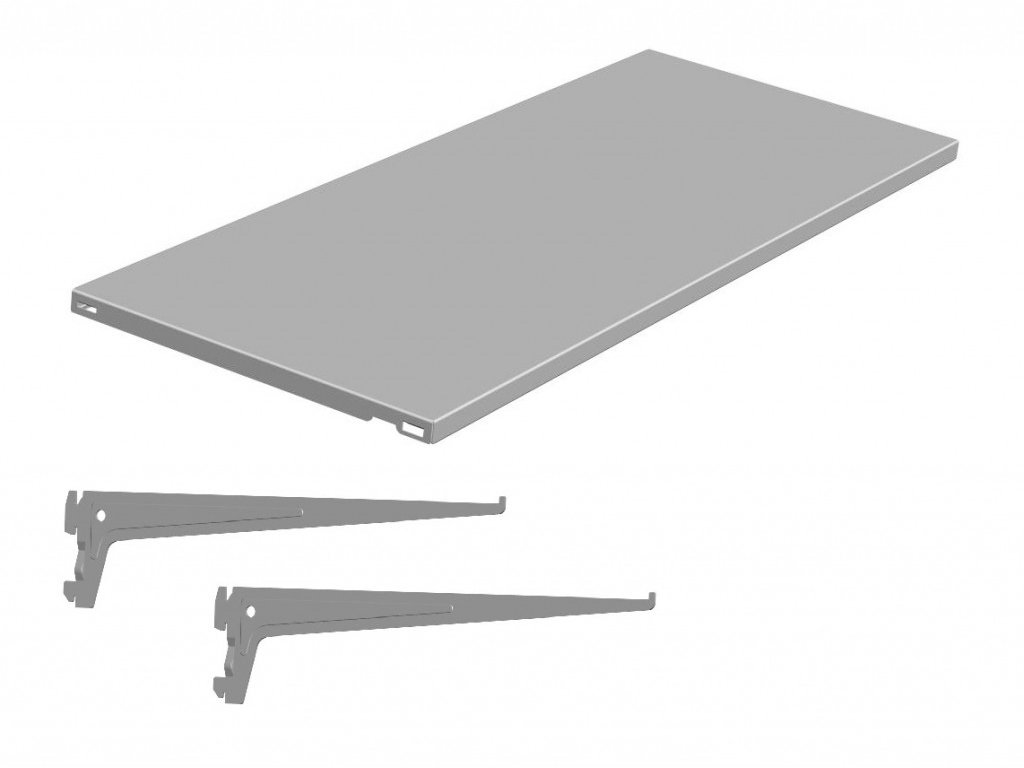 Plechová police 30 x 80 cm pro nástěnné regály Biedrax, stříbrná - komplet s nosníky