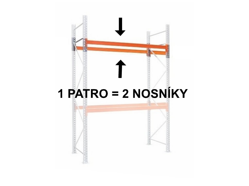 přídavné patro k paletovým regálům tvoří dva nosníky (vodorovné příčky).