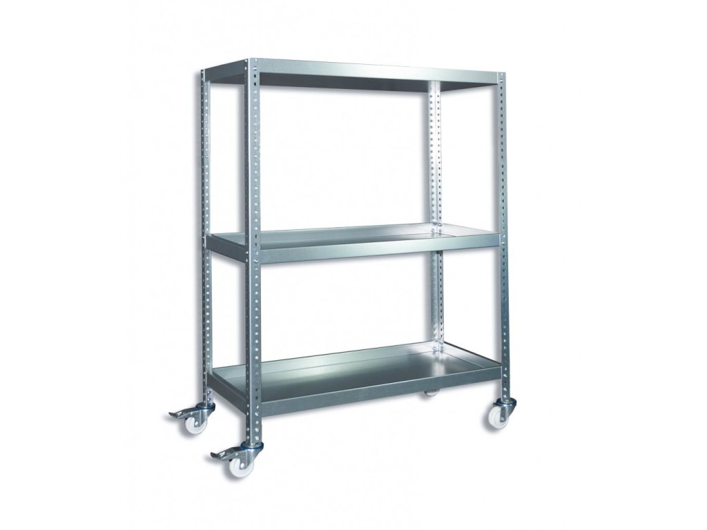 pojízdný regál s kolečky Biedrax 60 x 100 x 130 cm, 3 police - pozinkovaný