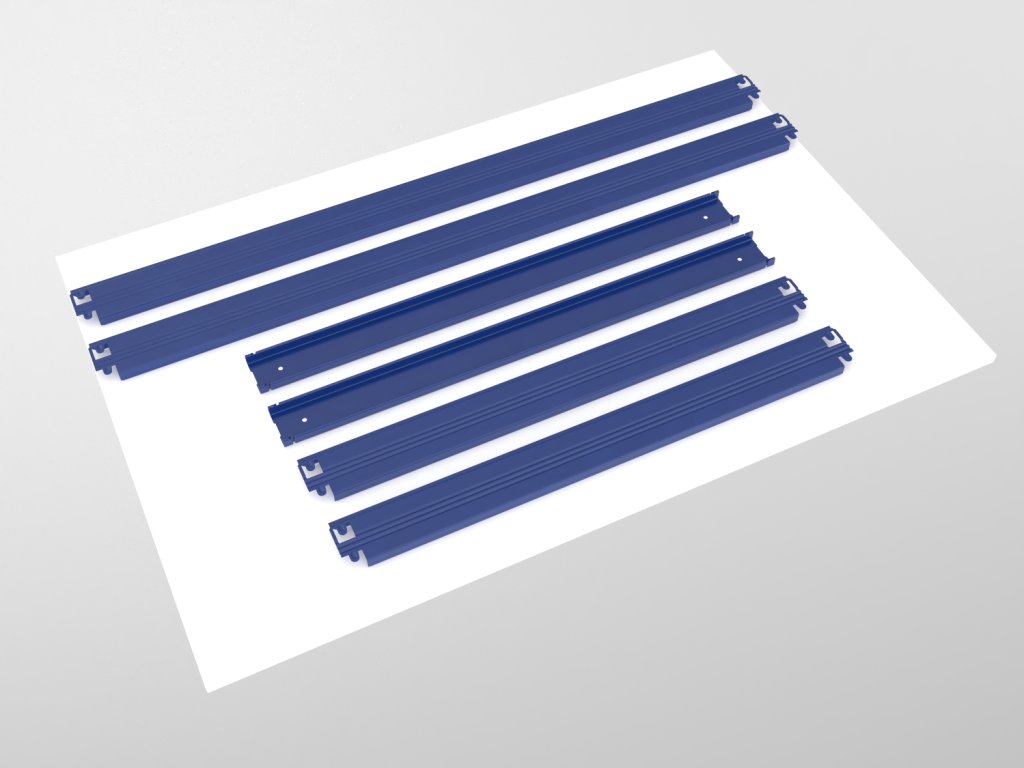 - Výška patra je 64 mm (police přesahuje horní hranu nosníků o 7 mm)