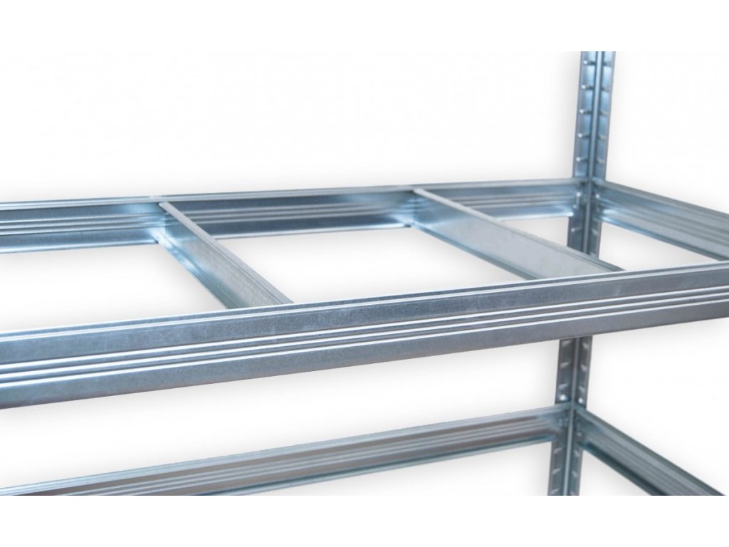 - kovové stojiny, nosníky, výztuhy i police jsou vyrobeny z pozinkovaného plechu