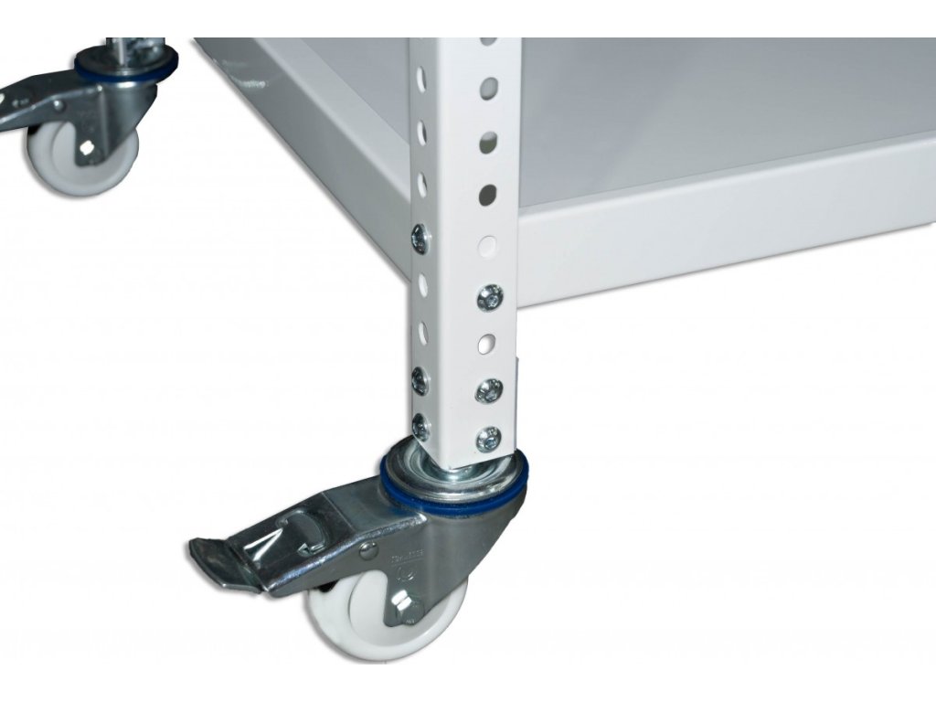 Pojízdný policový vozík Biedrax vhodný do skladu pro převoz materiálu, do garáže na nářadí, do obchodu na zboží, do archívu pro převoz dokumentů nebo i do domácnosti na květiny, sazenice a podobně (pozinkované provedení vozíku lze používat například i ve sklenících). Kvalitní pojízdný vozík s 2 bržděnými a 2 nebržděnými kolečky zaručuje velmi dlouhou životnost díky použitým materiálům. Šroubovaný systém montáže umožňuje nastavit police dle vašich představ a zároveň pevné spojení a stabilitu při manipulaci.