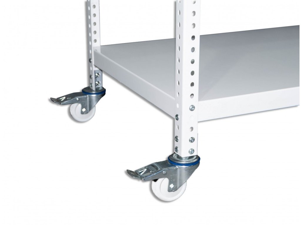 Pojízdný policový vozík Biedrax vhodný do skladu pro převoz materiálu, do garáže na nářadí, do obchodu na zboží, do archívu pro převoz dokumentů nebo i do domácnosti na květiny, sazenice a podobně (pozinkované provedení vozíku lze používat například i ve sklenících). Kvalitní pojízdný vozík s 2 bržděnými a 2 nebržděnými kolečky zaručuje velmi dlouhou životnost díky použitým materiálům. Šroubovaný systém montáže umožňuje nastavit police dle vašich představ a zároveň pevné spojení a stabilitu při manipulaci.