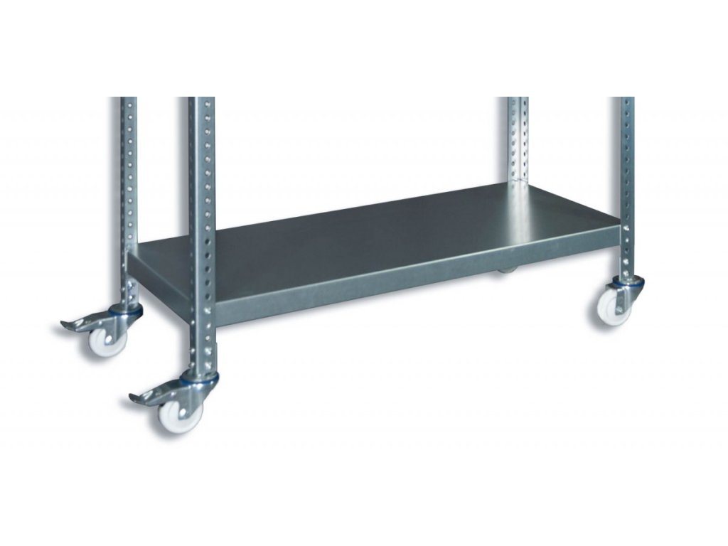 Pojízdný policový vozík Biedrax vhodný do skladu pro převoz materiálu, do garáže na nářadí, do obchodu na zboží, do archívu pro převoz dokumentů nebo i do domácnosti na květiny, sazenice a podobně (pozinkované provedení vozíku lze používat například i ve sklenících). Kvalitní pojízdný vozík s 2 bržděnými a 2 nebržděnými kolečky zaručuje velmi dlouhou životnost díky použitým materiálům. Šroubovaný systém montáže umožňuje nastavit police dle vašich představ a zároveň pevné spojení a stabilitu při manipulaci.
