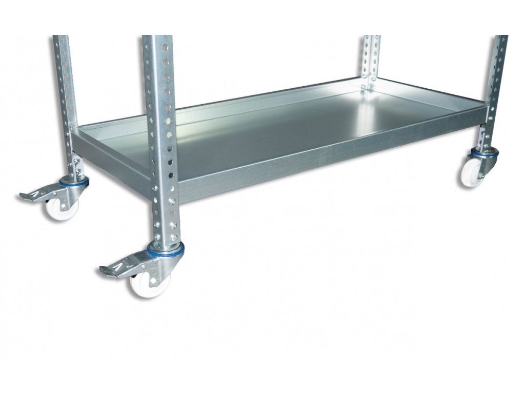 Pojízdný policový vozík Biedrax vhodný do skladu pro převoz materiálu, do garáže na nářadí, do obchodu na zboží, do archívu pro převoz dokumentů nebo i do domácnosti na květiny, sazenice a podobně (pozinkované provedení vozíku lze používat například i ve sklenících). Kvalitní pojízdný vozík s 2 bržděnými a 2 nebržděnými kolečky zaručuje velmi dlouhou životnost díky použitým materiálům. Šroubovaný systém montáže umožňuje nastavit police dle vašich představ a zároveň pevné spojení a stabilitu při manipulaci.