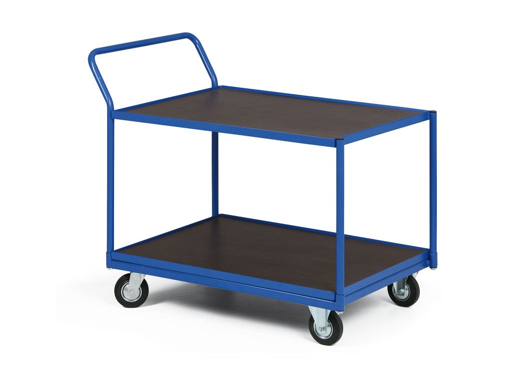 Dílenský policový vozík na přepravu zboží či materiálu. Konstrukce vozíku je svařena z ocelových profilů. Nosnost vozíku je 400 kg. Lakováno vypalovacím práškovým lakem v odstínu RAL5005 - modrá. Police z voděodolné překližky má vysokou nosnost a odolnost proti povrchovému poškození. Rozměr police je 1000 x 700 mm. Kola jsou vybavena poklicí, která brání namotávání nití a provázků a také zanášení ložiska různými nečistotami, čímž se prodlužuje životnost kola. Kola jsou o průměru 200 mm a 2 jsou pevná a 2 otočná podle vlastní osy. Kola lze na objednávku doplnit o dvojčinnou brzdou proti pojezdu i proti otáčení kolem svislé osy.