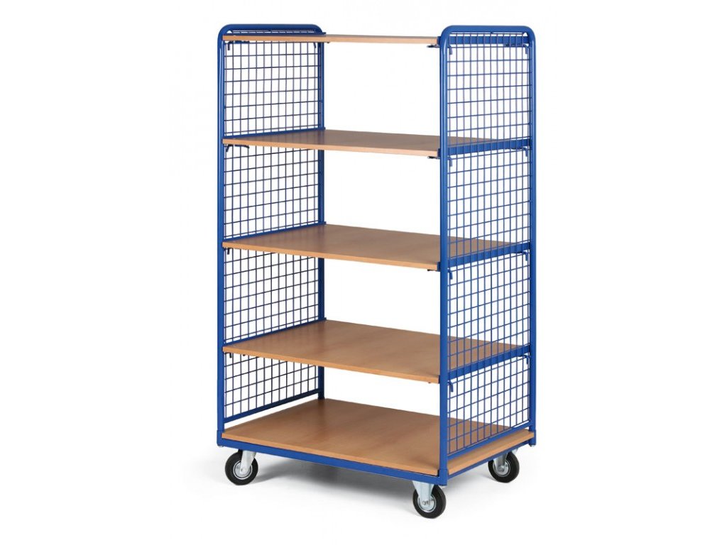 Dílenský policový vozík pro přepravu zboží či materiálu. Konstrukce vozíku svařena z ocelových profilů. Nosnost vozíku 200 kg. Lakováno práškovým vypalovacím lakem v odstínu RAL 5005 - modrá. Police z dřevotřísky. Kola s poklicí, která brání namotávání nití a provázků a také zanášení ložiska různými nečistotami, čímž se prodlužuje životnost kola. Kola lze na objednávku doplnit o dvojčinnou brzdou proti pojezdu i proti otáčení kolem svislé osy.