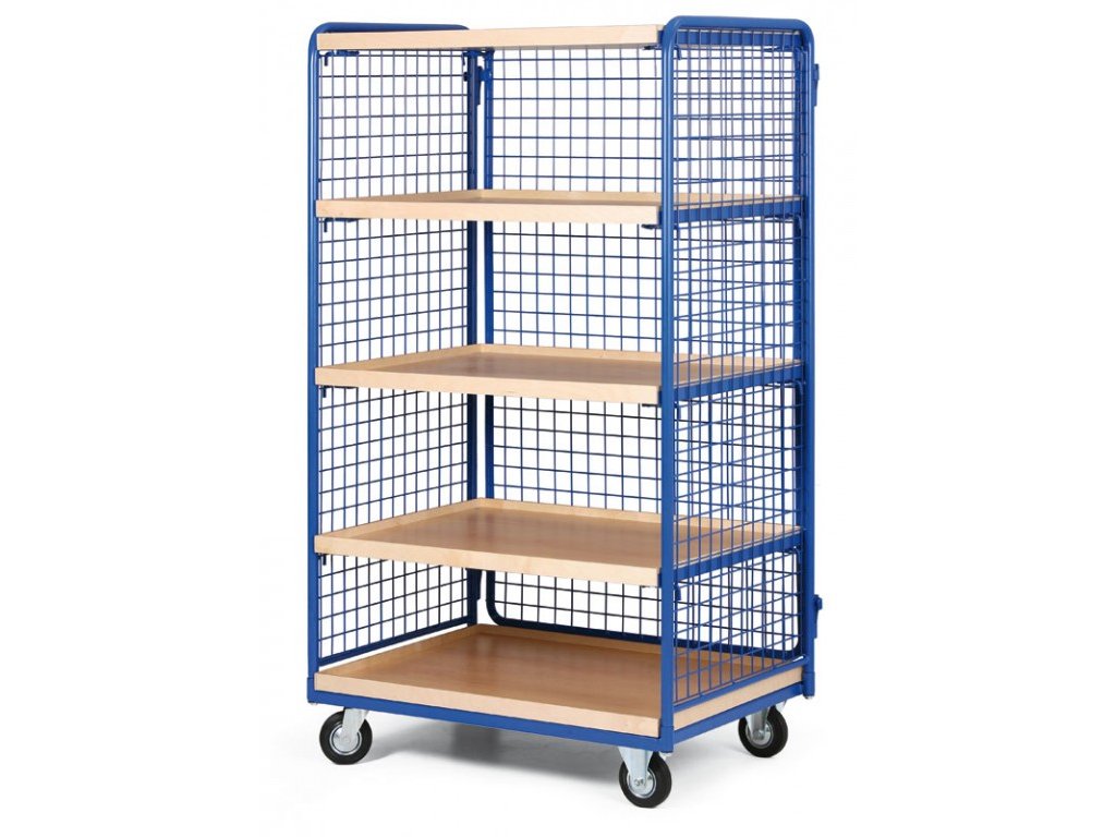 Dílenský policový vozík pro přepravu zboží či materiálu. Konstrukce vozíku svařena z ocelových profilů. Nosnost vozíku 400 kg. Lakováno práškovým vypalovacím lakem v odstínu RAL 5005 - modrá. Police z dřevotřísky. Kola s poklicí, která brání namotávání nití a provázků a také zanášení ložiska různými nečistotami, čímž se prodlužuje životnost kola. Kola lze na objednávku doplnit o dvojčinnou brzdou proti pojezdu i proti otáčení kolem svislé osy.