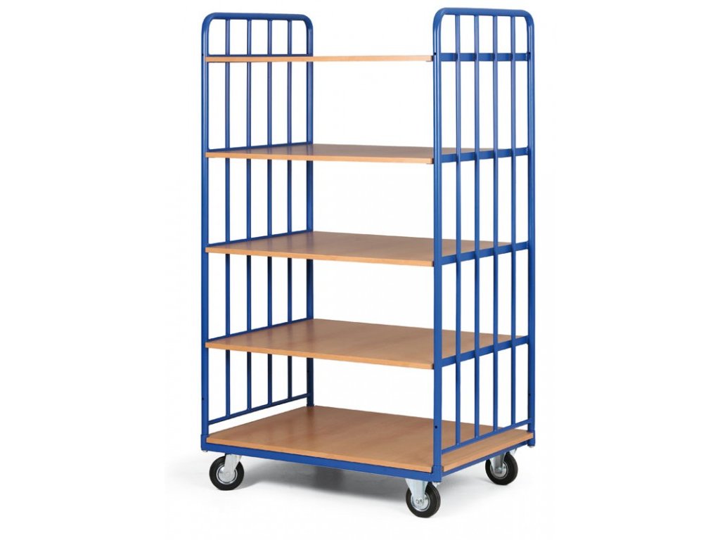 Dílenský policový vozík pro přepravu zboží či materiálu. Konstrukce vozíku svařena z ocelových profilů. Nosnost vozíku 400 kg. Lakováno práškovým vypalovacím lakem v odstínu RAL 5005 - modrá. Police z dřevotřísky. Kola s poklicí, která brání namotávání nití a provázků a také zanášení ložiska různými nečistotami, čímž se prodlužuje životnost kola. Kola lze na objednávku doplnit o dvojčinnou brzdou proti pojezdu i proti otáčení kolem svislé osy.