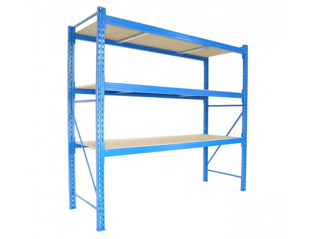 Profesionální regál Biedrax základní 100 x 200 x 200 cm, 3 police - nosnost 350 kg/police, modrý