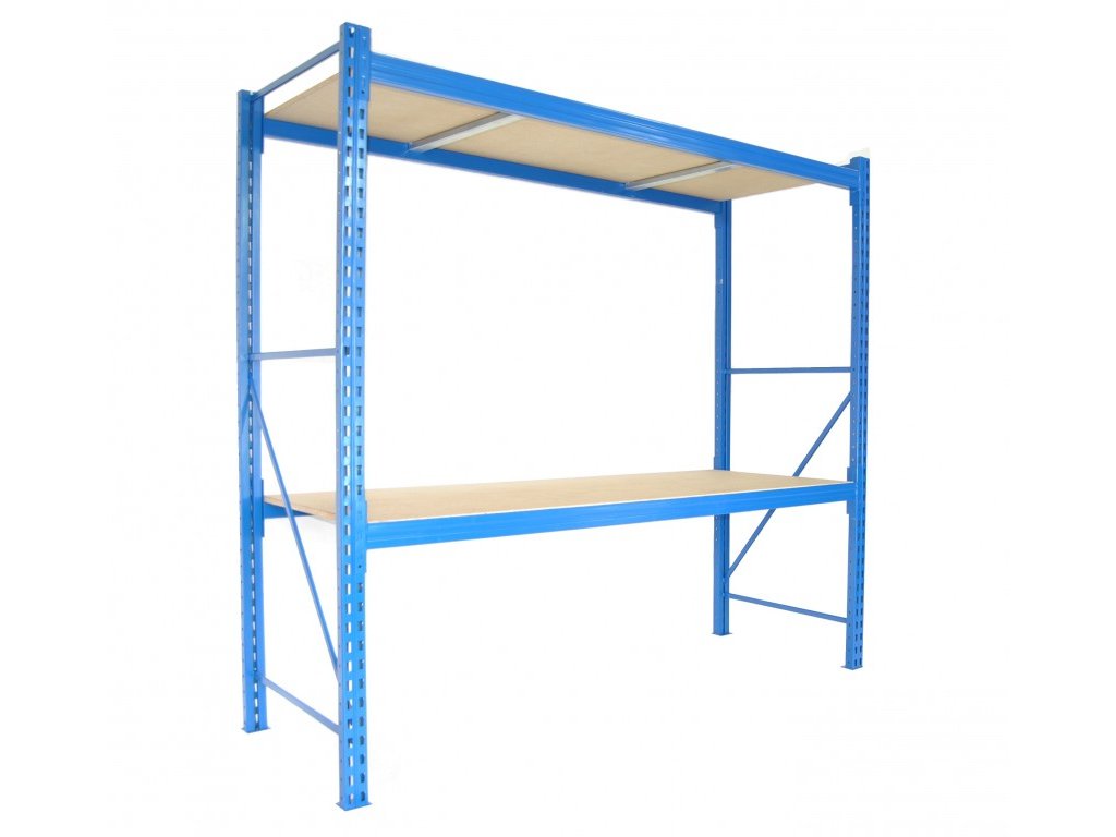 Profesionální regál Biedrax základní 60 x 150 x 300 cm, 2 police - nosnost 350 kg/police, modrý