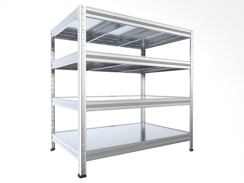 - Kovové stojiny, nosníky, výztuhy i police jsou vyrobeny z pozinkovaného plechu