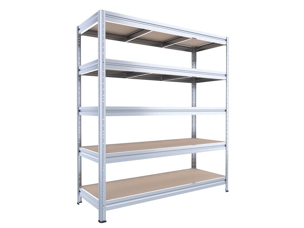 Velký regál do garáže Biedrax 60 x 200 x 180 cm, pozink, 5 polic MDF, nosnost 350 kg na polici