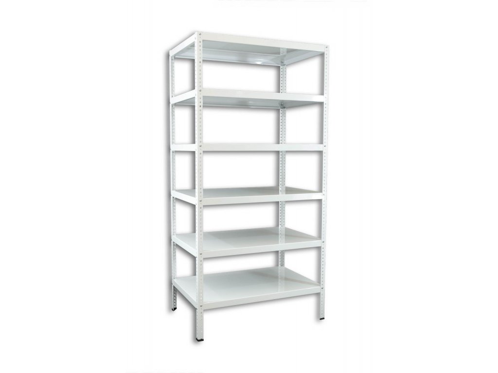 Kovový regál do skladu Biedrax s kovovými policemi, šroubovaný 60 x 100 x 250 cm, 6 polic - bílý
