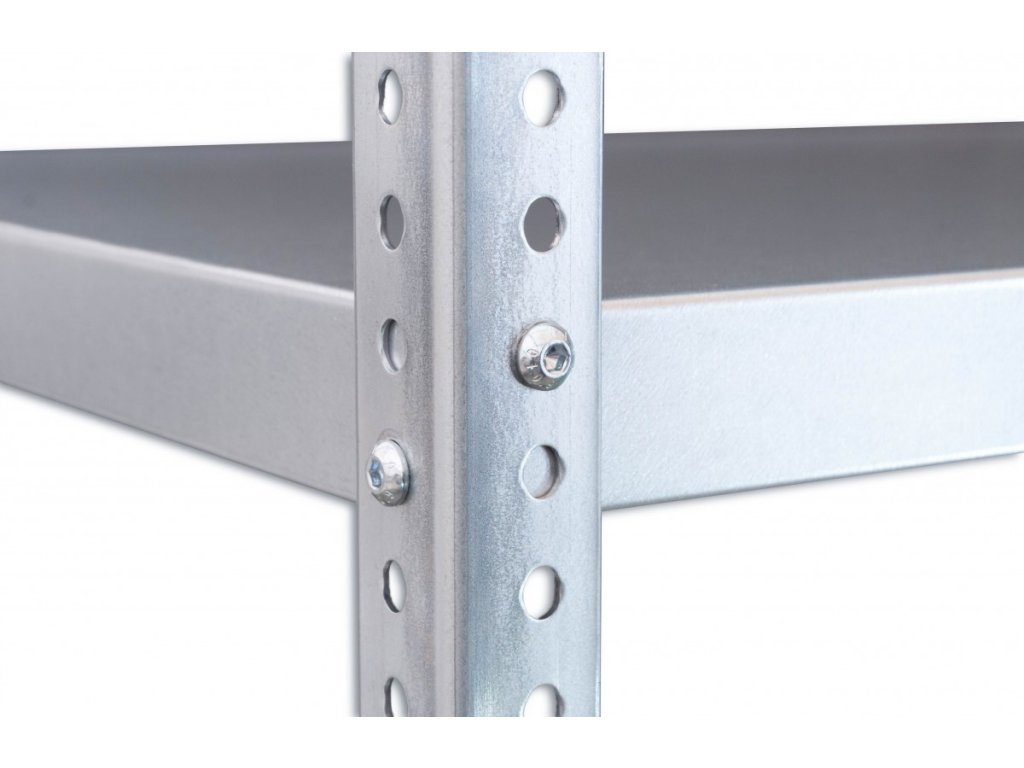 Šroubovaný regál do skladu je omyvatelný běžnými čistícími prostředky, a lze jej používat i ve vlhkém prostředí třeba do sklepa, do nevytápěné garáže, na zahradu do skleníku nebo do domku na nářadí. Šroubované regály se ale hodí především do archívu, do dílny, do provozu, do skladu, jelikož tyto regály snesou i těžší zacházení. Kvalitní stabilní regály nejen pro profesionální použití, ale i do skladu nadšenců a mistrů, kteří chtějí to nejlepší. Montáž regálu trvá déle, protože se každá police šroubuje ke stojinám za pomocí šroubů a matic - nicméně, delší doba montáže (spousta šroubků a matic) je odměněna bytelným "regálem na věky". Jedná se jednoznačně o nejlepší, nejkvalitnější, nejtrvanlivější, bytelné celokovové šroubované regály. Za vyšší pořizovací cenu dostanete výborné dílenské zpracování a "nesmrtelný regál".