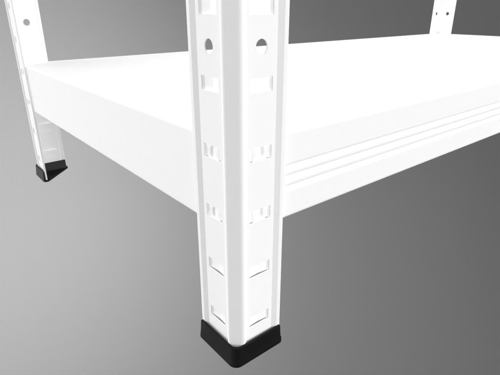 - Balení obsahuje kompletní regál, jak je vyobrazen na prvním obrázku nahoře v galerii: stojiny, police včetně výztuh a plastové patky. Naleznete v něm vše potřebné pro snadné sestavení.