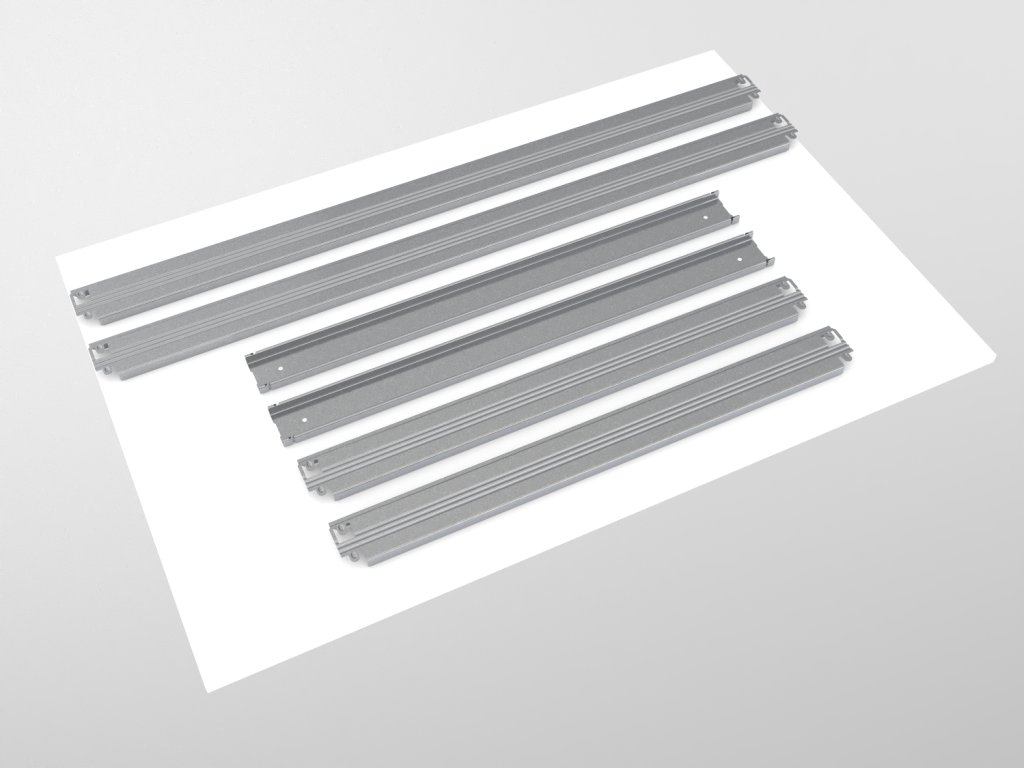 - Výška patra je 64 mm (police přesahuje horní hranu nosníků o 7 mm)