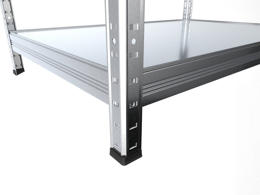 Regál do spíže s pozinkovanými plechovými policemi, které jsou odolné, omyvatelné a vhodné i do vlhkého prostředí jako jsou sklepy, garáže nebo skleníky. Unikátní bezšroubový systém zaručuje rychlou montáž a vysokou stabilitu. Police jsou navíc chytře zapuštěny do nosníků, čímž vzniká praktický 4mm okraj, který brání vypadnutí uložených předmětů.