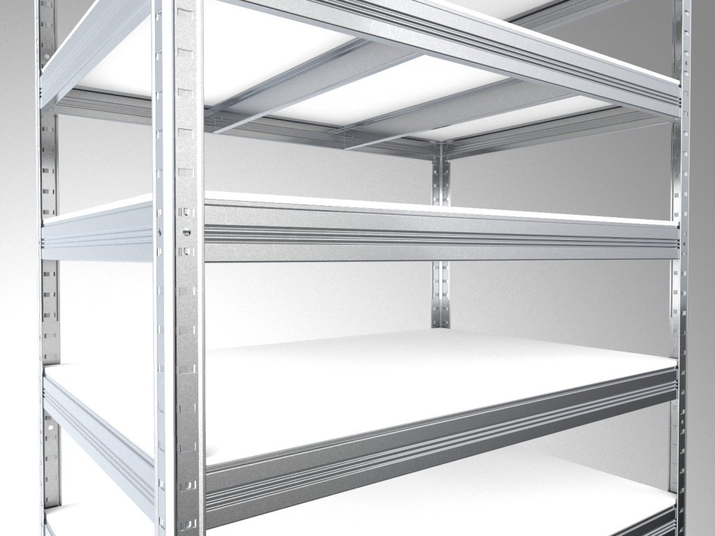 Regál do spíže Biedrax 60 x 120 x 240 cm, pozink, 5 polic bílé lamino 12mm, nosnost 200 kg na polici